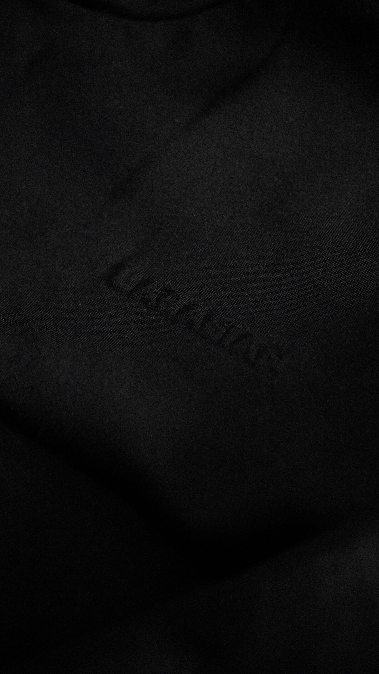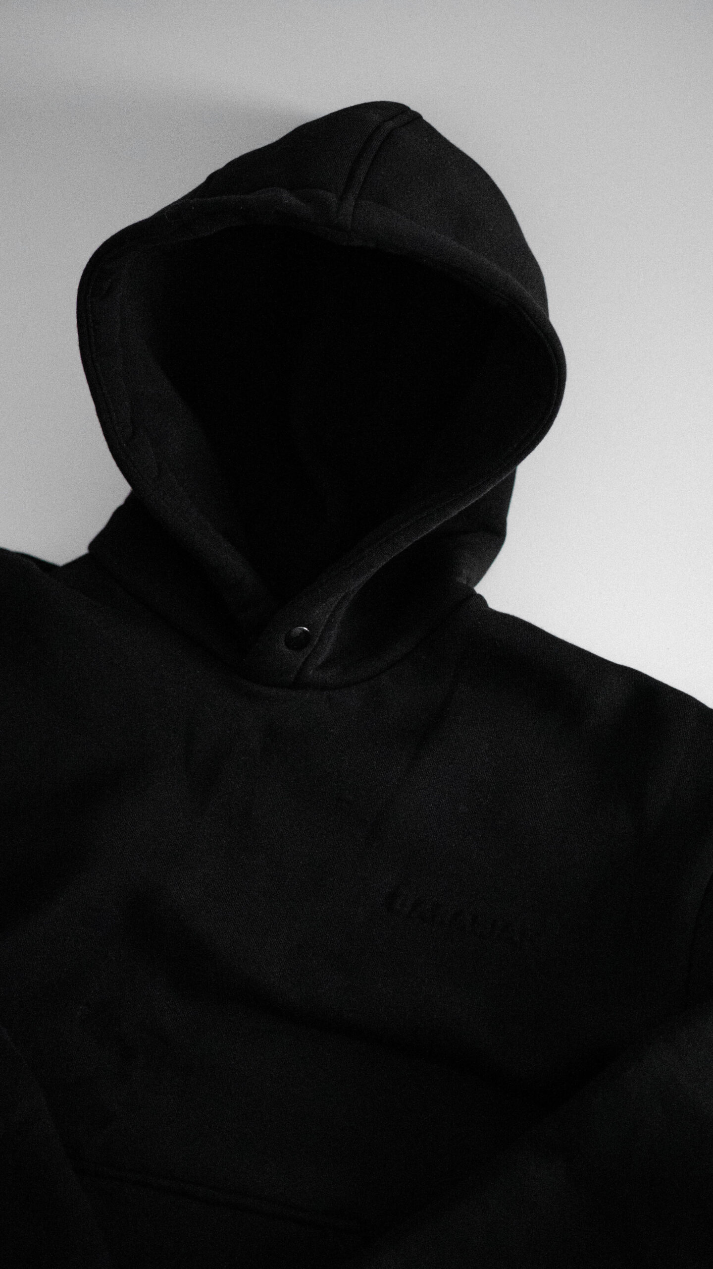 The design features a tone-on-tone embossed Barabian name across the chest, subtly blending into the deep black fabric — a statement of quiet confidence. Finished with an adjustable hood and reinforced seams, this piece stands for both strength and sophistication.